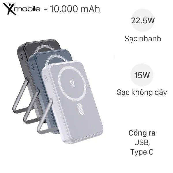 Xmobile T121 cũng có đèn LED hiển thị phần trăm pin, giúp người dùng dễ dàng theo dõi. Sản phẩm có nhiều cổng kết nối, bao gồm cả Type-C và USB-A, hỗ trợ sạc cùng lúc nhiều thiết bị.